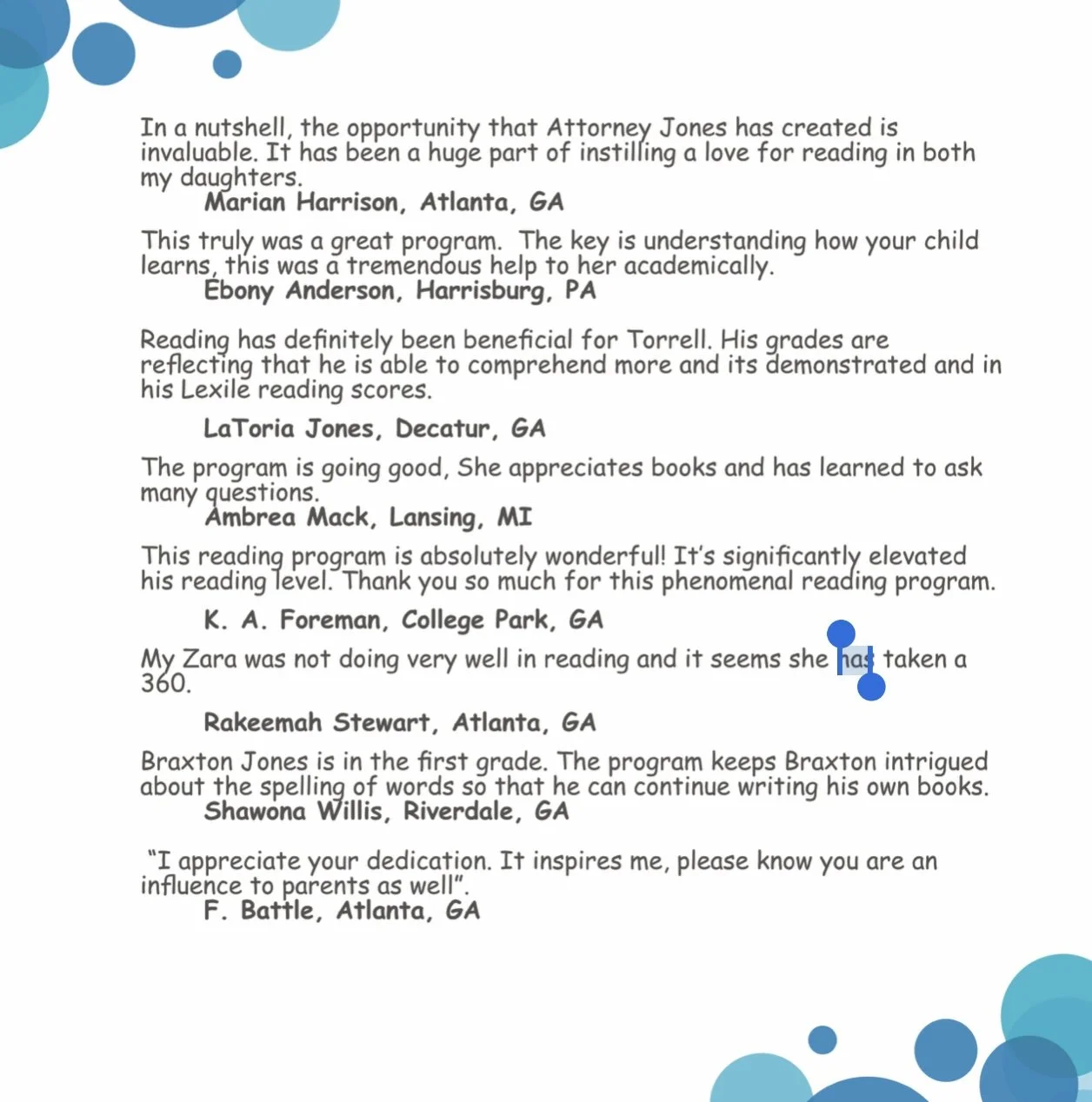We are a 501c3 non-profit corporation located in Hampton (Atlanta) Georgia. Our mission is to follow the exhortation of Frederick Douglass, “It is easier to build strong children than it is to repair broken men.